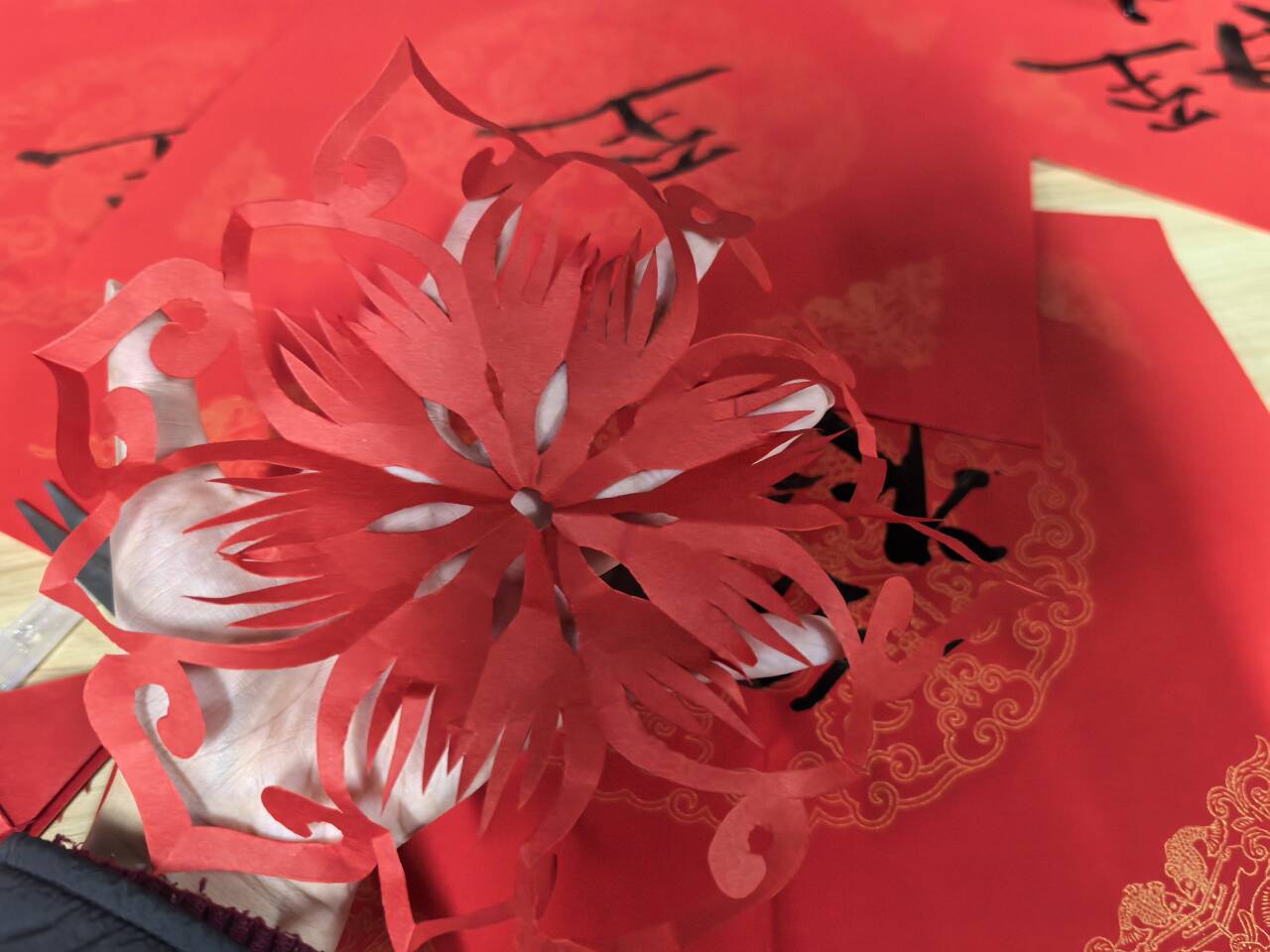 活动通过“包饺子、剪窗花、写‘福’字、品饺子”四个环节,引导学子们在亲身实践与协作共创中沉浸式体验传统节俗。活动伊始,食堂工作人员首先进行包饺子技法示范,从填馅到捏合成型,逐步讲解操作要领。随后同学们动手实践,借助准备好的猪肉白菜和韭菜鸡蛋馅料,在协作交流中完成形态各样的饺子制作。在剪窗花和书写“福”字环节中,同学们运用剪纸的基本技法,将红色纸张转化为蕴含吉祥寓意的窗花图案,于红纸之上凝神运笔,在一划一捺间用笔墨承载祝福、寄托祝愿。随后,同学们围坐桌边品尝亲手包的饺子,鲜香在舌尖绽放,劳动的甘美与文化的温度在热气中交融升腾。