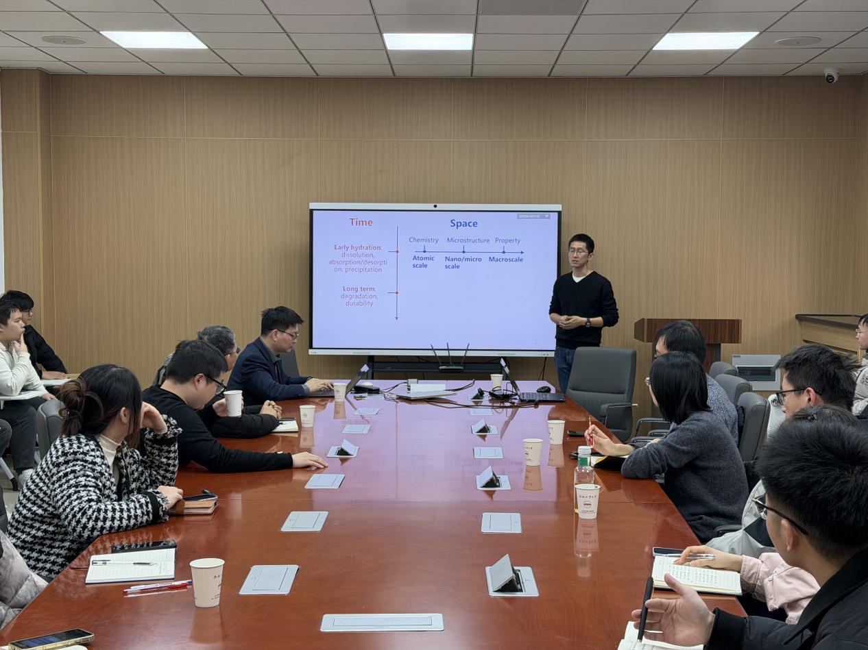 耿国庆作了题为《几种研究水泥基材料微观结构的同步光源技术和定量分析方法》的学术报告。报告简单介绍了几种同步光源技术在水泥水化和耐久性研究中的应用,包括微区X射线衍射,XRD三位扫描重构,微区X射线吸收谱等;同时也介绍了一种基于机器学习的扫描电镜图像定量分析的方法。