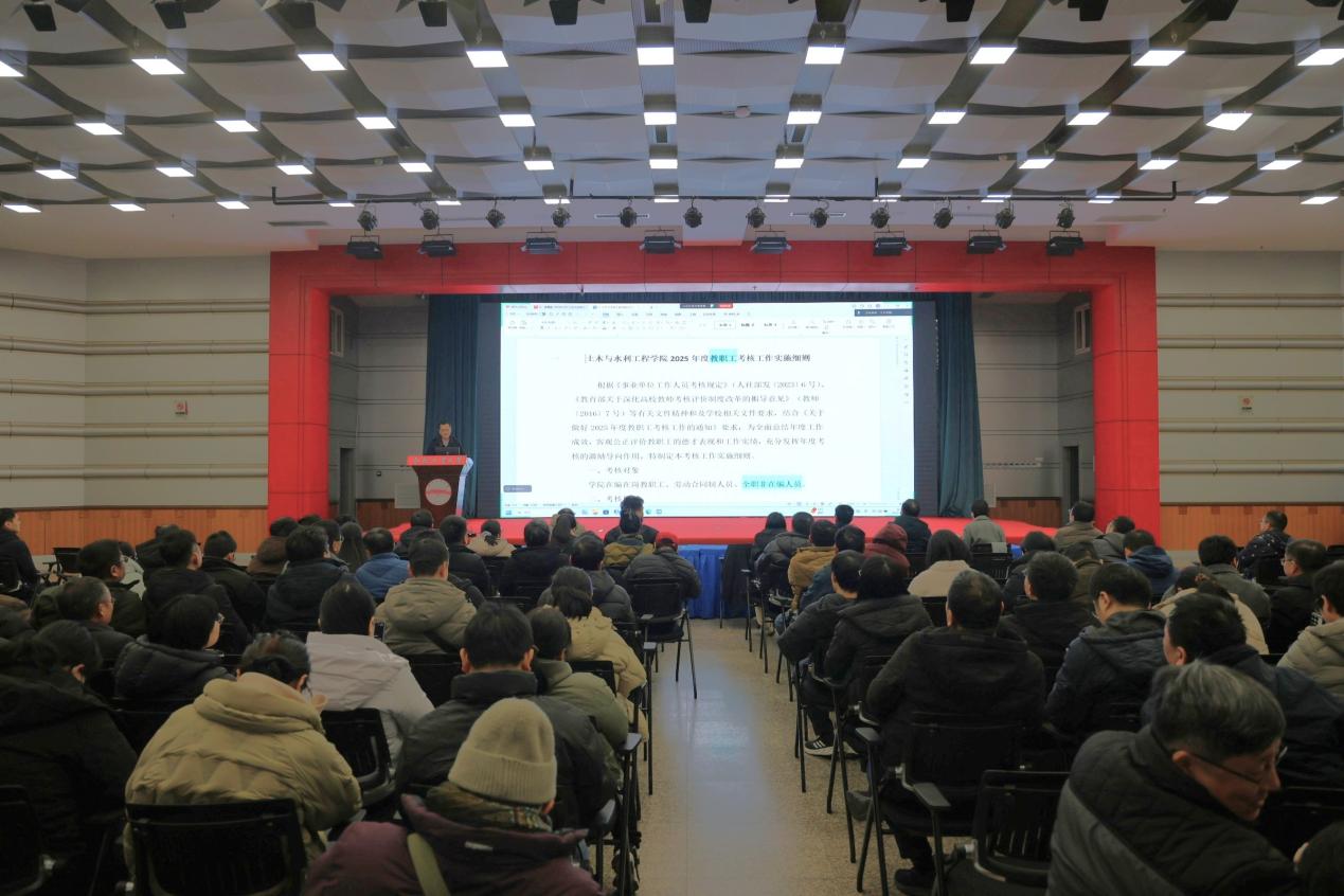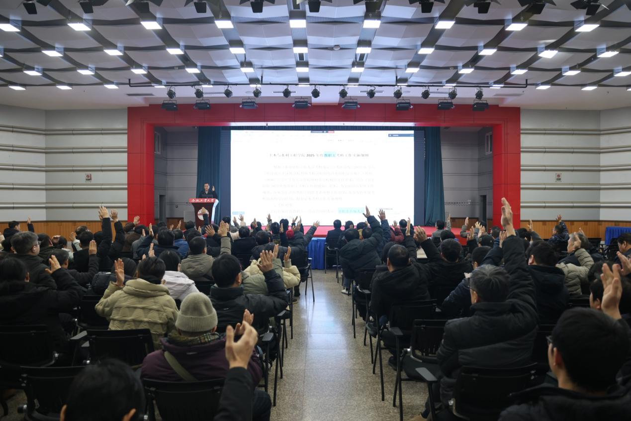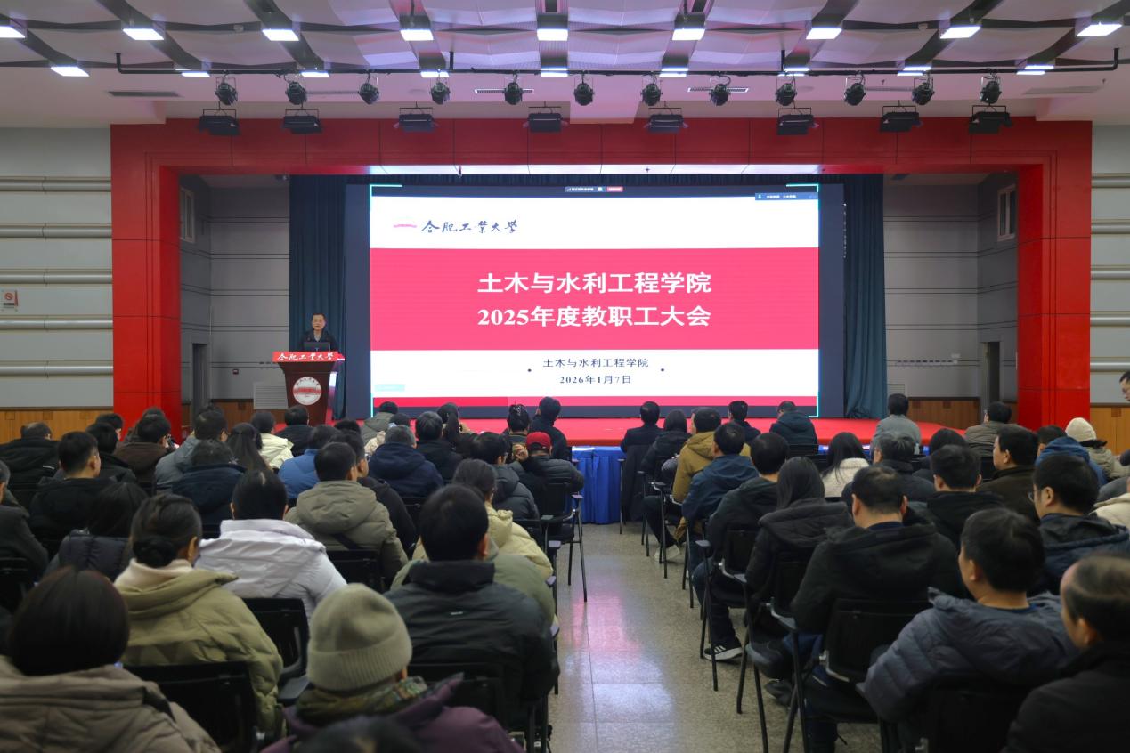 1月7日,学院在东风报告厅召开2025年度教职工大会。学院领导班子、全体教职工出席会议,城市建设工程系教师在宣城校区会场线上参会。王东坡书记主持会议。