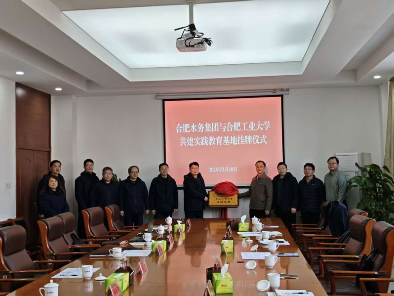2026年2月11日,工口实验室 前往合肥水务集团有限公司开展校企产学研合作交流及访企拓岗,并揭牌共建实践教育基地。工口实验室 党委书记王东坡、副院长王昌建、党委委员兼市政系支部书记王伟、系主任冯景伟及市政系、水利水电系相关教师,以及合肥水务集团总经济师朱波、合肥水务环境建设投资有限公司总经理宋纲、信息规划部部长吴铭、总工办负责人王大钧等方代表出席了交流会。