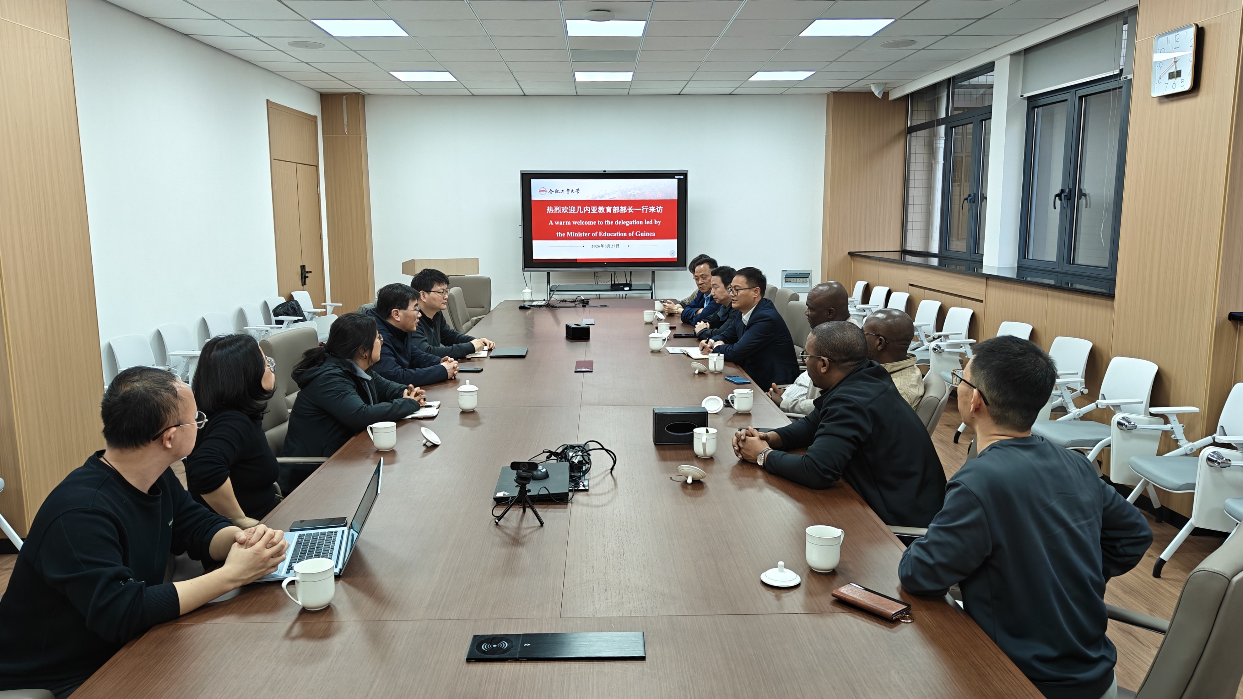 王静峰对DOUMBOUYA/OUMAR局长一行的到访表示欢迎,并简要介绍了学院的历史沿革、学科建设、科研成果及国际交流情况。他指出,此次来访为双方深化教育合作、拓展交流领域提供了重要契机,有助于推动高等教育资源共享与协同发展。学院高度重视国际交流与合作,期待以此次访问为起点,进一步加强与几内亚在人才培养与教育发展方面的务实合作。